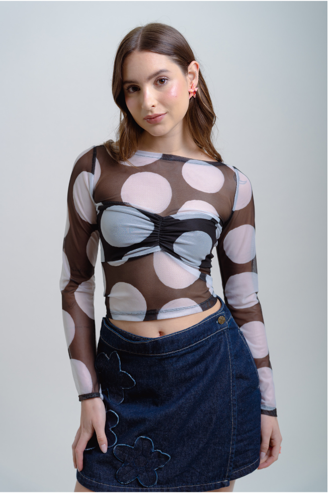 Regresan los Meshtops a Ocarina para esta temporada de final de año. Este top con una nueva silueta drapeada que vas a amar (porque tiene top con forro para que lo uses con libertad). Además estampado con el print de temporada ¡polkadots maxi! en una tela super suavecita y cómoda.